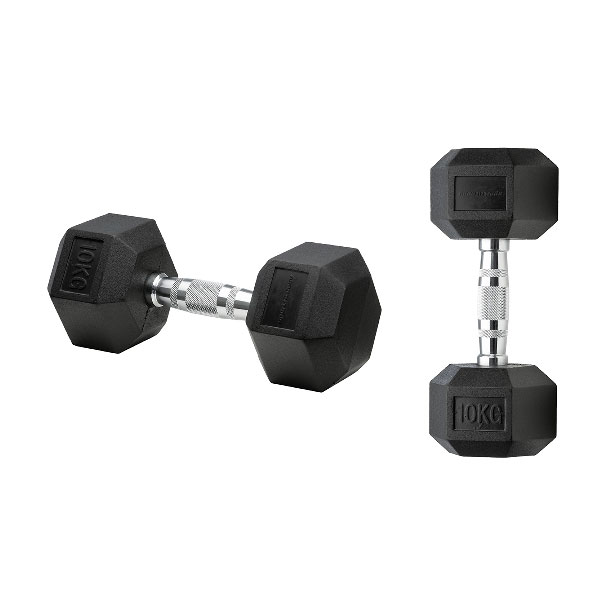 Aumenta tu fuerza y tonifica tus músculos con la mancuerna encauchetada 10Kg Hexagonal de SportFitness. Estas mancuernas están recubiertas de un material de alta calidad que no solo protege tus manos y el suelo de daños, sino que también proporciona un agarre antideslizante para mayor seguridad durante tus entrenamientos. Disponibles en varios pesos, las mancuernas encauchetadas son ideales para cualquier nivel de fitness y tipo de entrenamiento